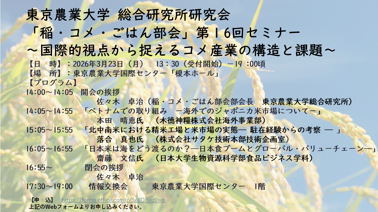 総合研究所研究会 稲・コメ・ごはん部会主催のイベントを開催いたします。 ご興味のある方はご参加ください。